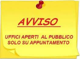 Considerata la situazione epidemiologica da COVID-19 gli uffici comunali sono CHIUSI AL PUBBLICO. Viene garantito il servizio solo su prenotazione.